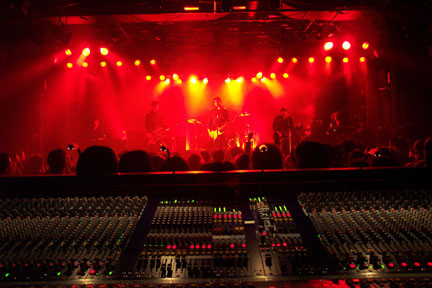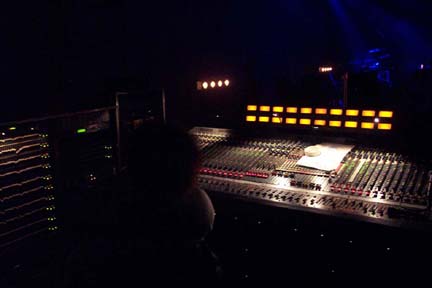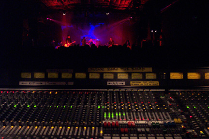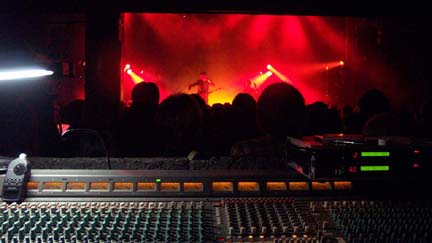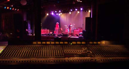 A great crew and a really good PA rounds out this fine venue. A Soundcraft series V resides at FOH driving a V-Dosc rig that could do a room twice the size. The only down side (as you can see from the picture) is front of house is way off to the right side close up to the front, so you get pummeled with one side of the V-Dosc rig, but I guess this might help from some folks mixing too loud.