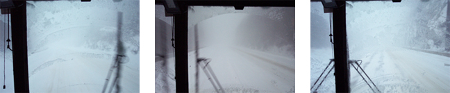 .A long drive to Seattle was our next task, and some great weather we had on the way. I woke up to find us traveling down a road that wasn’t really there, I was amazed the bus driver could see where he was going at all. As I sat down in the front lounge to do some work on the computer I suddenly hear the bus driver yell “Everybody hang on to something!” I look out the front window wondering what he is shouting about, and see not the road, but the mountain next to us. In the time it takes for me to wonder what I will do if we flip over, we go from sliding sideways, back to traveling straight down the road. Whew! Seems a transmission line broke and at that point the Jake break gave up, and lost control for a bit. We safely arrived at the next exit, where we sat for hours as a mechanic tried to get us on our way again. A big thanks to that mechanic who spent those many hours under the bus in windy rainy crap weather.