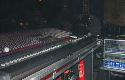 Our four shows with Afterhours went really well. We had separate front of house set ups. I got a great set up from Imola Audio Scene – the one in front – midas XL-200 and more outboard then you could shake a stick at. The desk behind was a trusty Soundcraft Vienna II for Afterhours.