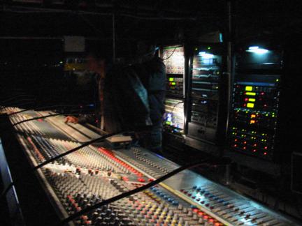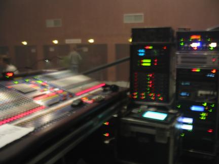 La Nef is a nice room, good PA and an Amek Recall, though they don’t have a computer to run the recall. The two small racks on the right is what I was carrying with me. The top rack is the bands, and the bottom one was rented from Canegreen.