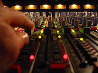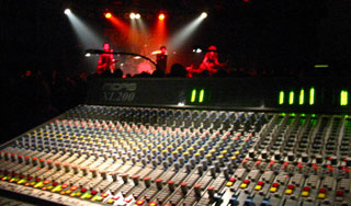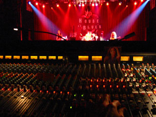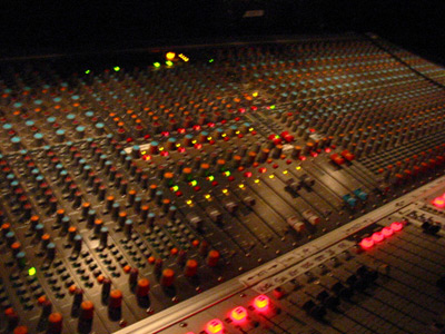 On the tour we stopped in Washington D.C. to play the most excellent 9:30 Club. Was great to see that they replaced their Crust, ah hem!, Crest with a new desk. Something I hadn’t seen before, the Audient Aztec. With the exception of the color choices of orange and light blue for many of the knobs, I liked it quite a bit. 12 VCA’s (what is one to do with 12 VCA’s?) Good sounding desk, nice eq’s and mic pre’s. Definitely a big improvement over what was in there. Some other cool features – the ability to assign aux sends to the matrix, and a “ambience” section in the middle consisting of a stereo mic pre, bass and treble eq, and assignment to aux sends (cool for bored tapes or in ear monitors audience mics).