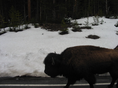 So the next day we head through, and it lives up to all its expectations. Beautiful scenery, wildlife, natural wonders, it’s all there. We saw herds of bison walking right next to the bus, we saw wolves, elk, a bear, old faithful, waterfalls, and bubbling pools of mud.