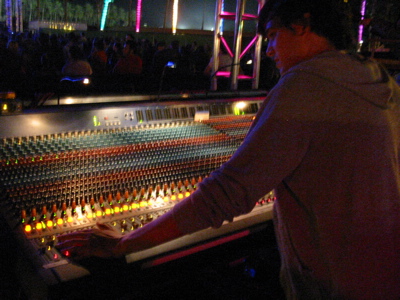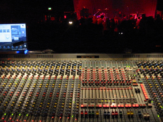 Our show was at the Fox theatre, my first time in there, and dig the classic Soundcraft Series IV they have in there. Once a great desk (and a beast of a thing), and for a time, in the 90’s it was a great classic, but now it would probably be best to just retire the thing to a museum. I don’t know if it’s dried up capacitors or what, but the 20+ old Soundcraft desk just don’t sound like they use to, and the eq’s just stop doing anything useful.Β It was sort of fun to mix on that old beast though, all antique and whatnot.